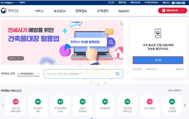 - 정부 24 웹사이트 또는 모바일 앱에 접속합니다.