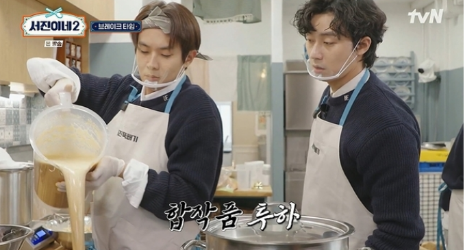 첫날 예상을 뛰어넘는 손님들로 인해 음식 재료가 빠르게 소진되자, 임직원들은 둘째 날 더 많은 양의 재료를 준비했습니다. '곰탕맨' 이서진, '돌비걸즈' 정유미와 고민시, '갈비보이즈' 박서준과 최우식이 각각 맡은 바를 철저히 준비하며 바쁘게 움직였습니다. 특히, 최우식은 업무 속도를 높이기 위해 노동요로 '왕벌의 비행'을 재생해 의외의 선곡으로 팀원들에게 웃음을 주었습니다.