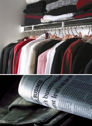 ● 옷걸이 사이에 신문지를 걸어두어 습기와 냄새를 제거합니다.